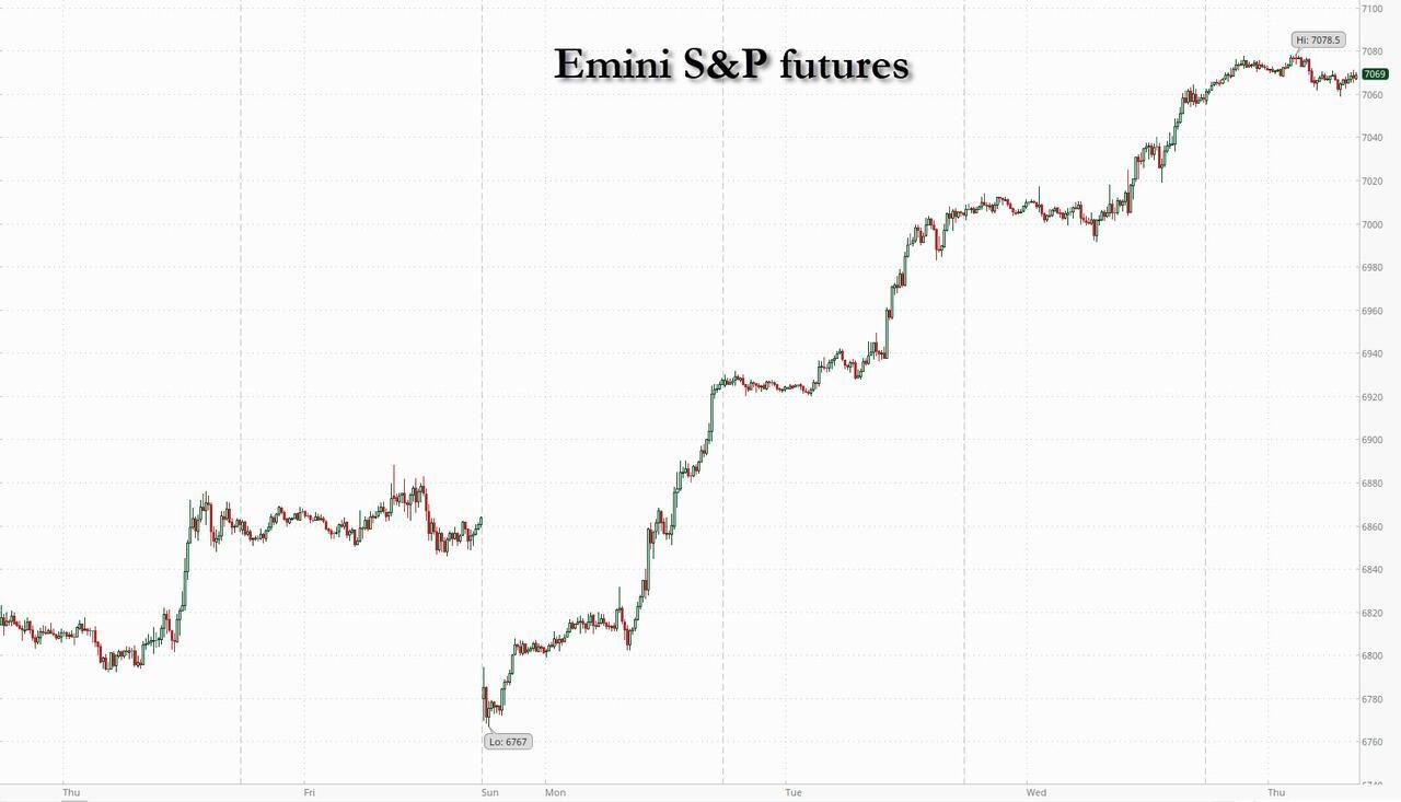 股市期货因中东停火可能延长以及台积电(TSMC)强劲财报提振人工智能相关股票而上涨。截至美国东部时间上午8:15,标普500期货上涨0.1%,纳斯达克100合约上涨0.2%,后者连续第12个交易日上涨。台积电的乐观前景推动了科技股上涨,微软和特斯拉领涨“七巨头”。