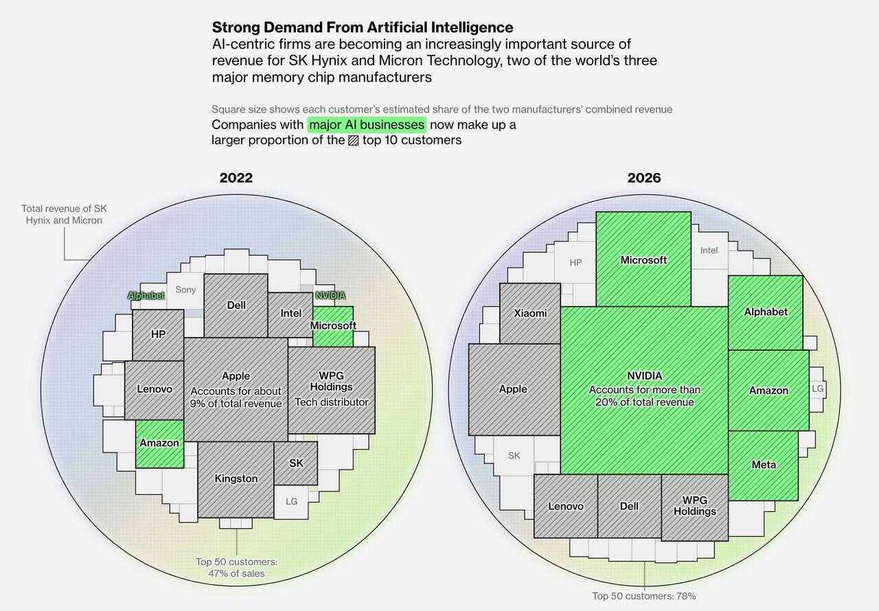 AI系统,特别是那些利用高带宽内存(HBM)进行更快数据处理的系统,比传统计算需要更多的内存。随着数据中心为支持AI而扩张,其DRAM使用量已飙升。