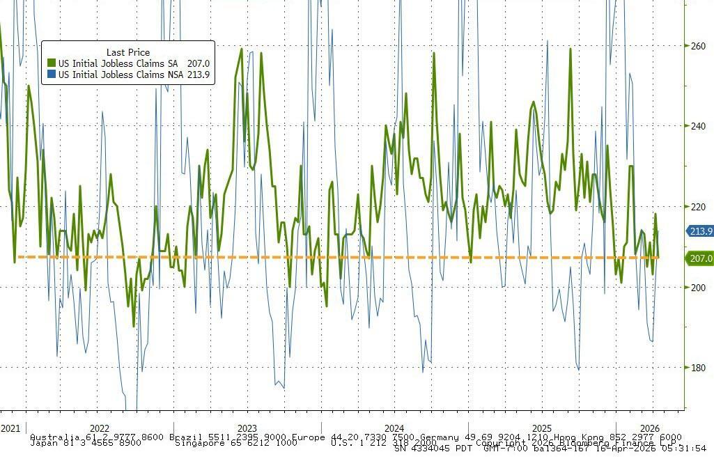 首次申请失业救济金人数降至20.7万(低于预期的21.3万,低于前值的20.925万)——回落至近五年来的低位(并呈现出接近50年来的最低水平的趋势)。来源:彭博社尽管上周略有上升,但持续申请失业救济金人数自年初以来一直低于190万的“马奇诺防线”。来源:彭博社正如以下图表所示,虽然找到新工作可能“不容易”,但解雇率仍然很低。来源:彭博社“不招聘,不解雇”的经济正在蓬勃发展。