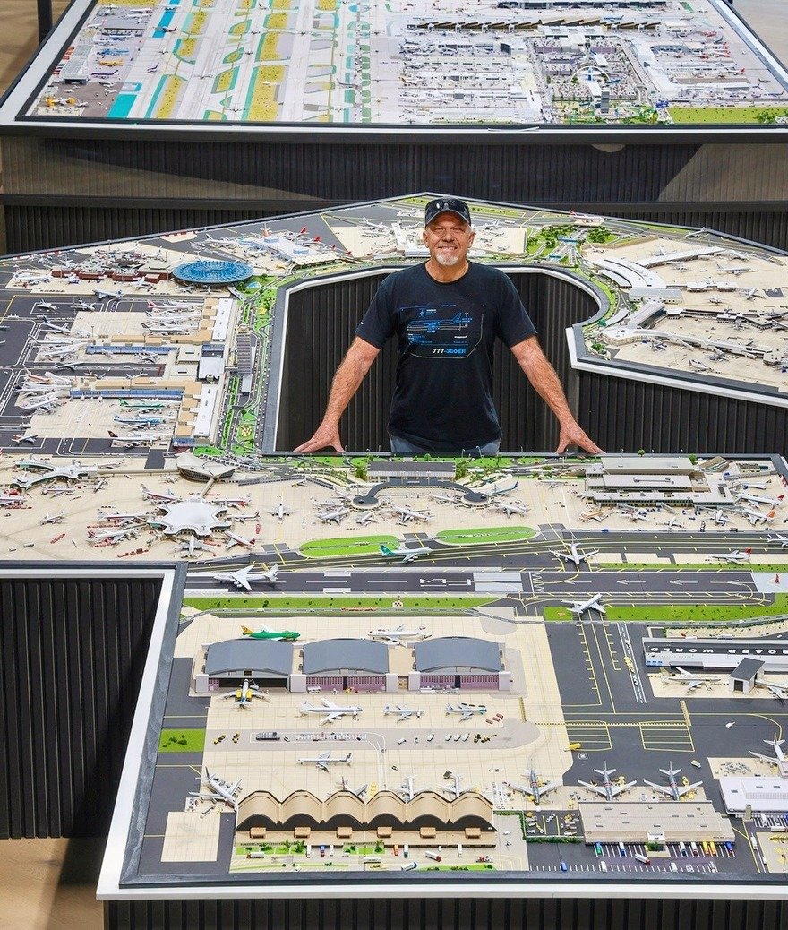 布赖恩·基恩曾是一名航空公司飞行员,后退役并担任航空业高管,但他对机场仍然着迷。 甚至在退休后,他创立了AV Pro Designs公司,该公司制造著名机场的模型微缩景观。(他们将模型卖给博物馆、机构和“微缩景观社区”,无论那是什么。) 在设计1:1400比例的模型时,基恩借鉴了他自己作为飞行员的经验和档案照片,重现机场在特定时期的景象。 例如,该公司对肯尼迪机场(JFK)的还原是70年代和80年代的样子,洛杉矶机场(LAX)是80年代和90年代的样子。 他们对孟买机场(BOM)的模型尤其引人注目,因为他们制作了夜景。 该公司还制作了希思罗机场和纽瓦克机场;香港启德机场和法国戴高乐机场正在制作中。