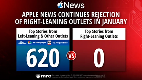 Ferguson's letter to Cook came one day after a New York Post report cited the Media Research Center, a conservative watchdog group, which analyzed 620 stories featured on Apple News and found that not one was published by right-leaning publications.