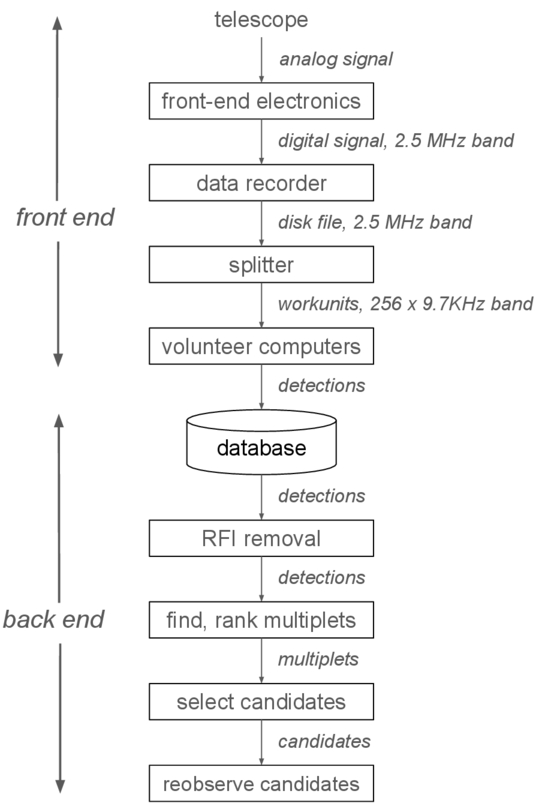 Figure 1. The SETI@home data acquisition and analysis pipeline.