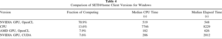 Table 4. Comparison of SETI@home Client Versions for Windows