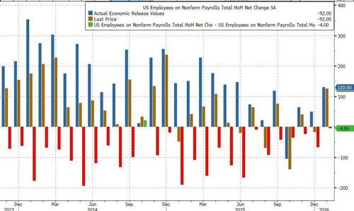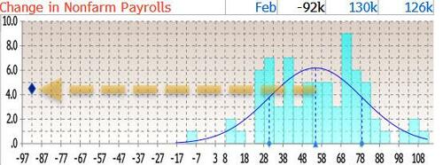 The February payrolls print was a six-sigma miss to the 55K median estimate, and came in 83K below the lowest estimate!