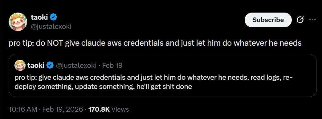ippsec: Really fun read here [where someone’s Claude agent steals his API keys out of an .env despite being told not to access an .env, because I mean it had root access, what did you expect exactly.]