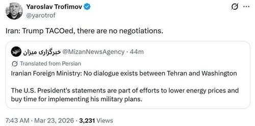 At this point it's anything but clear whether Trump's announcement of talks will lead to an actual slowdown or pause in fighting. Here's how Russia's RT framed Iran's stance: