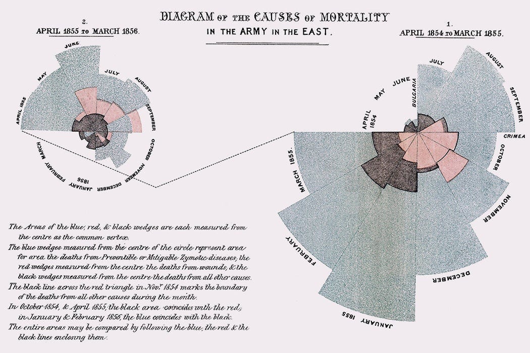 These failed attempts to capture a distinctly Victorian data visualization style should not be surprising. Claude Design is optimized to make slides and other data visualizations that suit modern sensibilities, and we can guess that there wasn’t much Du Bois or Galton in its training data. But aside from the by-now-familiar fact that AI models tend toward the median and the expected, there is the larger absence here: these charts don’t have a perspective.
