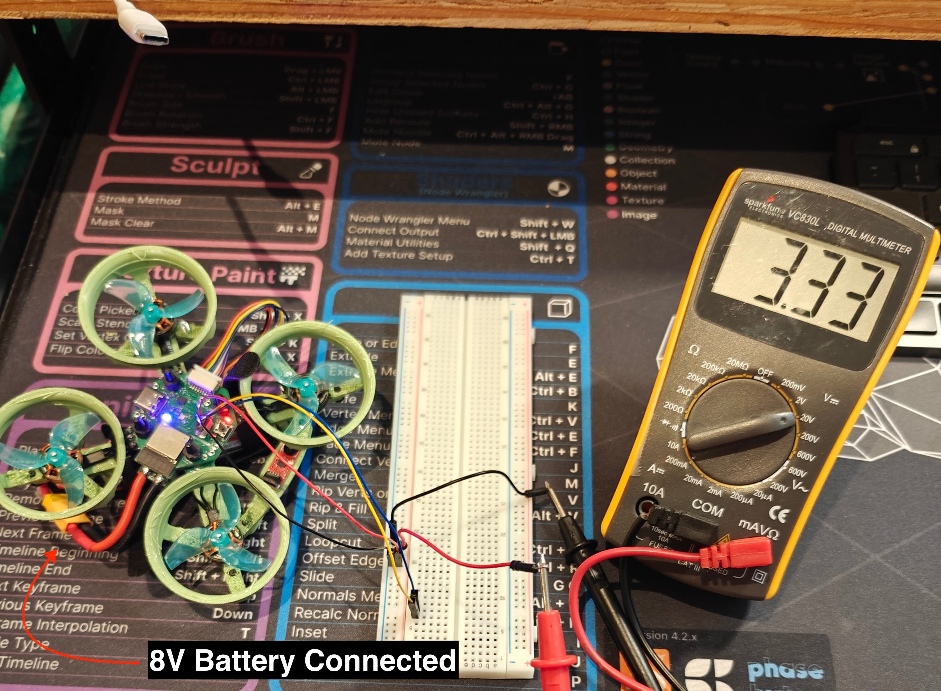 Eventually I had to plug my drone into the battery that would power it in flight, and all of a sudden the magnetometer stopped working completely. I pivoted back to it in an effort to debug it, but nothing worked. I tried to reset the board, I tried to add the code to automatically reset and reinitialize the magnetometer if I hadn’t heard from it for a while, but no matter what I tried it would stay dead when the battery was plugged in.