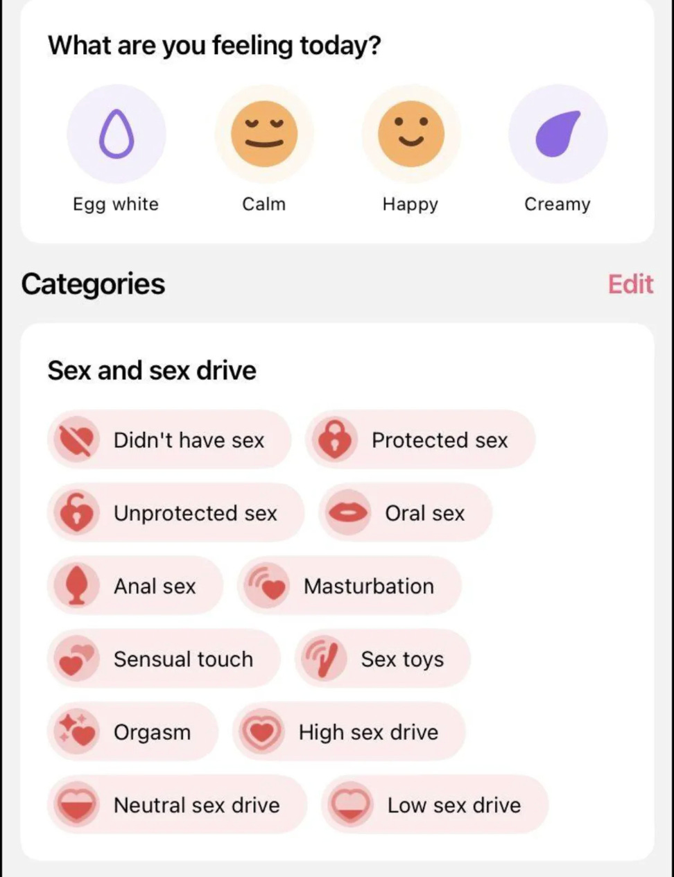 With each update, the home display presented me with the option for ever growing opportunities for negative symptom reporting. Without any differentiation in hierarchy, everything seemed flatly pathological. The symptoms were pushed more and more to the front and advice popped out at every turn, essentially burying the actual cycle tracker.