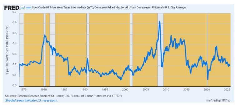 Suffice it to say here that the correct answer to high oil prices everywhere and always is high oil prices. This truth was driven home in spades by the oil busts of 2009, 2015, and 2020, and the fact the real price of oil today (2025 $) is no higher than it was in the mid-1970s.