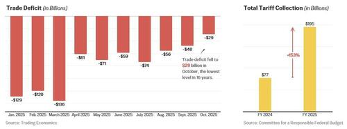 Since peaking at $136 billion, the U.S. goods and trade deficit fell to $29 billion in October—the lowest level in 16 years.