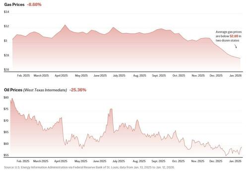 Crude oil prices are trading below $60, while two dozen states are enjoying average gasoline prices below $2.80 a gallon. Market watchers expect the same trends in the year ahead.