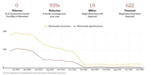 President Donald Trump has emphasized border security as a central policy priority. By securing the border, the United States has experienced a 93 percent reduction in border crossings, 622,000 deportations, and 1.9 million self-deportations.