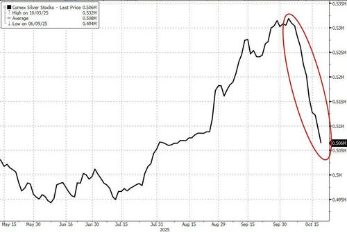On Tuesday, silver in vaults linked to the Shanghai Futures Exchange saw the biggest one-day outflow of silver since February, while New York stockpiles have also fallen.