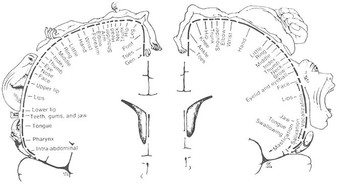 When proprioception gets wonky, all kinds of bizarre things can result. Oliver Sacks wrote of a patient whose brain stopped mapping his own left leg as a part of his body. The patient was convinced that the “leg” near his torso was alien, a cadaver leg slipped into his hospital bed, some kind of monstrous joke or trick. Whatever it was, it couldn’t be his left leg. But when he very reasonably threw it out of his bed, the patient was astonished to find the rest of himself on the floor as well.
