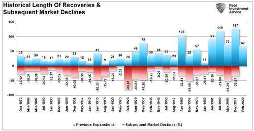 考虑到潜在的经济逆风,如增长放缓、人工智能颠覆和高债务,更现实的预测,使用赫斯曼的公式,表明未来十年回报为*负*(-1.2%)。投资者行为,追逐回报并低卖,进一步降低了实际收益,使投资者远低于承诺的回报。市场可能已经完成了整个周期的一半,虽然进一步的收益是可能的,但历史表明,回调是不可避免的。