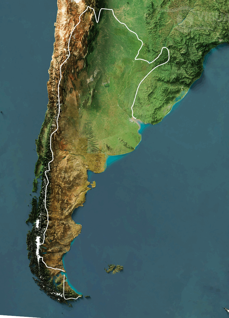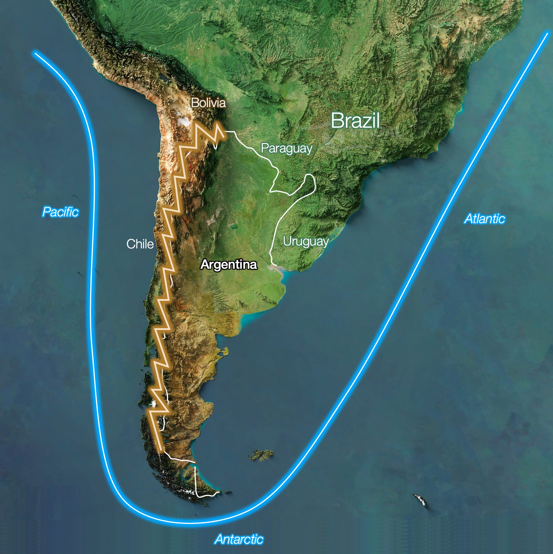 Al oeste y noroeste, una de las barreras montañosas más altas del mundo protege a Argentina de Chile y Bolivia: los Andes.
