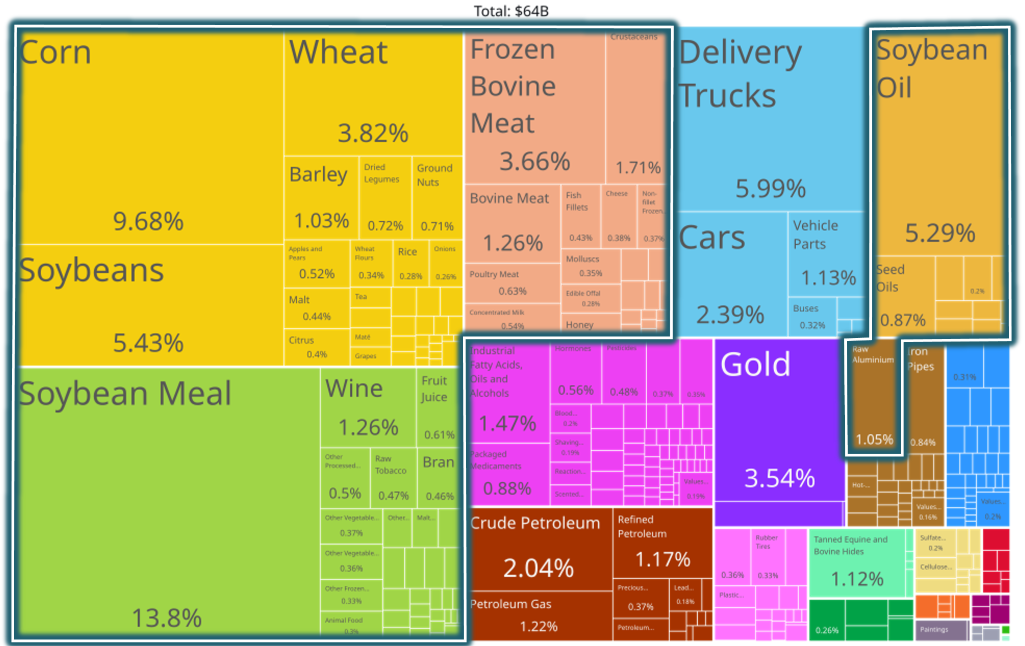 In other words, the US has the Great Plains, Argentina has the Pampas. And with their similar soils and climates, they can produce and export inordinate amounts of food.