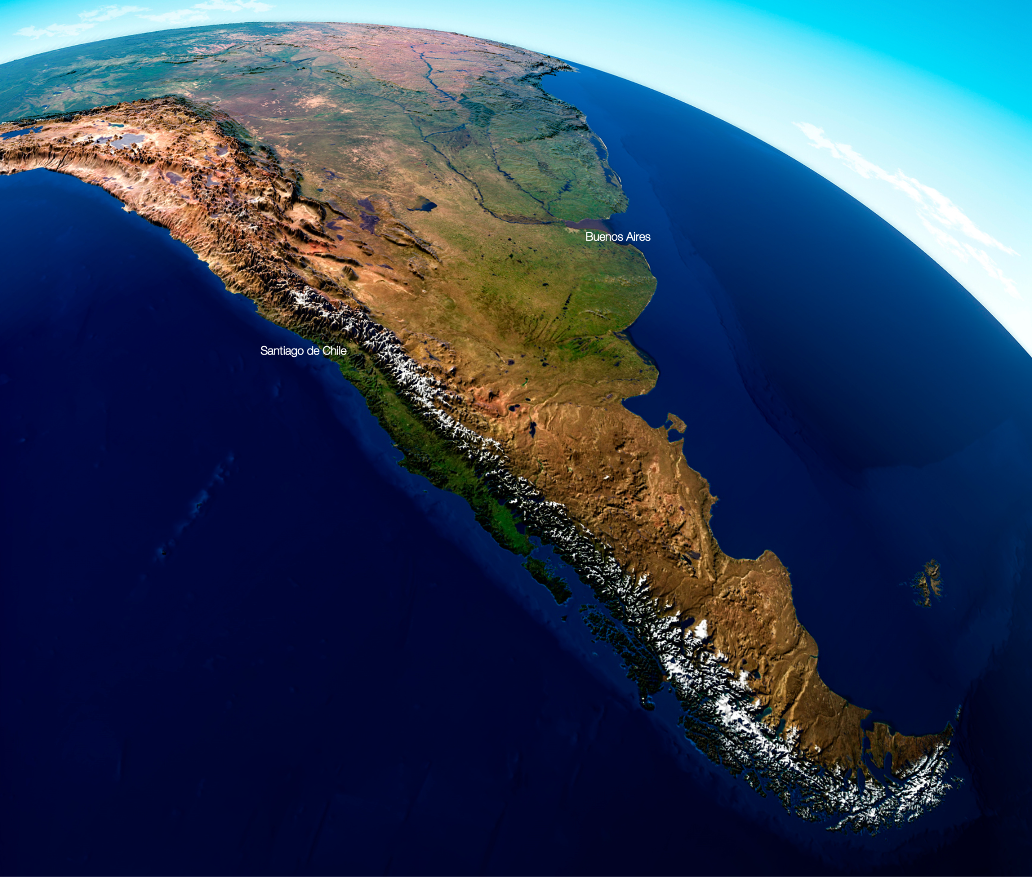 And if you think it’s a coincidence, think again, for both lateral mountain ranges have the same origins in the US and Argentina! On the western side, we find the tall mountain ranges.