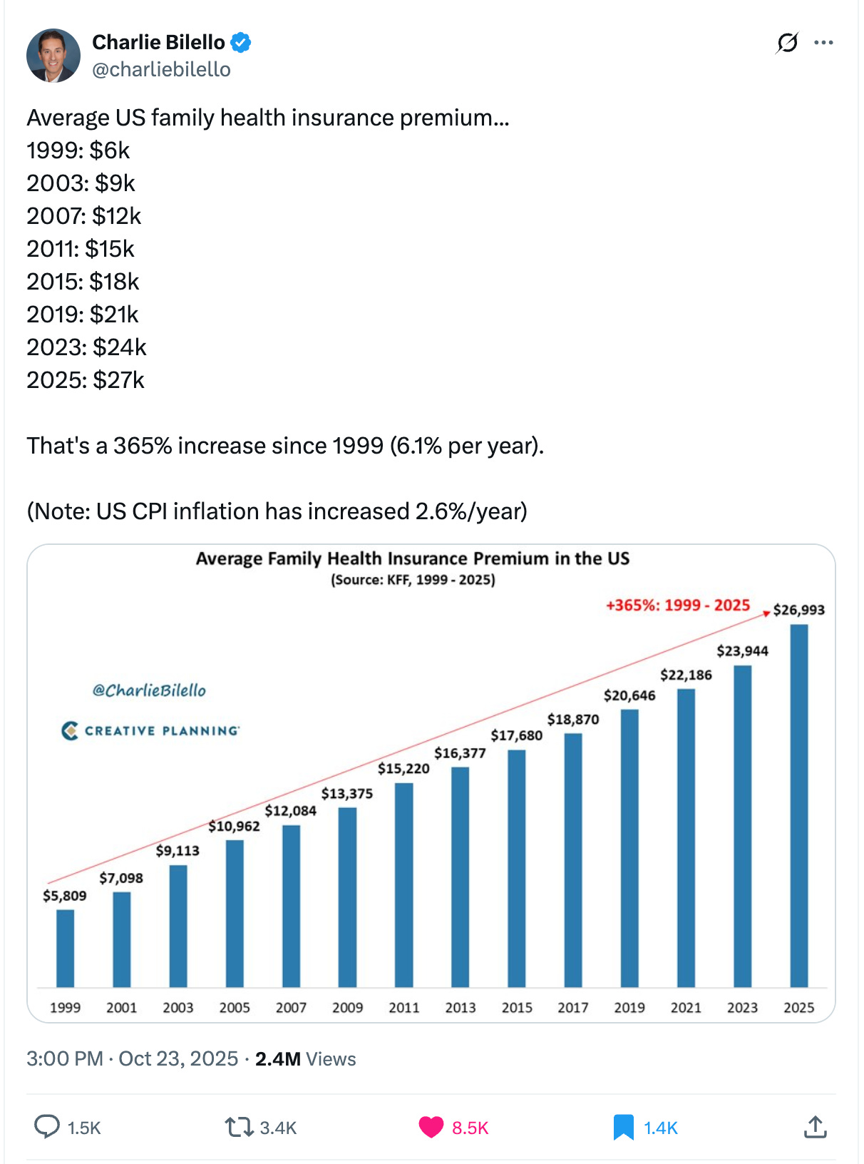 What I’m showing you is why health insurance, in its current format, looks like a bad deal to so many people. The unanswered question is how many people?