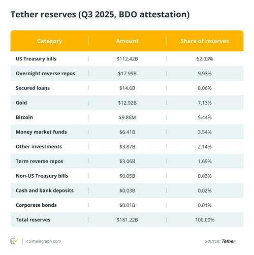 Tether no longer looks like a simple stablecoin company. It runs a balance sheet packed with short-term US Treasurys, reverse repos, gold and even Bitcoin. It mints and redeems dollars at scale and can freeze addresses at the request of law enforcement.