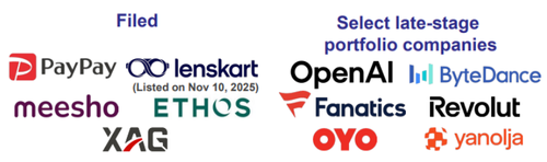 Goldman analyst Francois Theis reminded clients of SoftBank's 11% stake in Sam Altman's OpenAI, along with its publicly listed holdings and pipeline of upcoming listings.