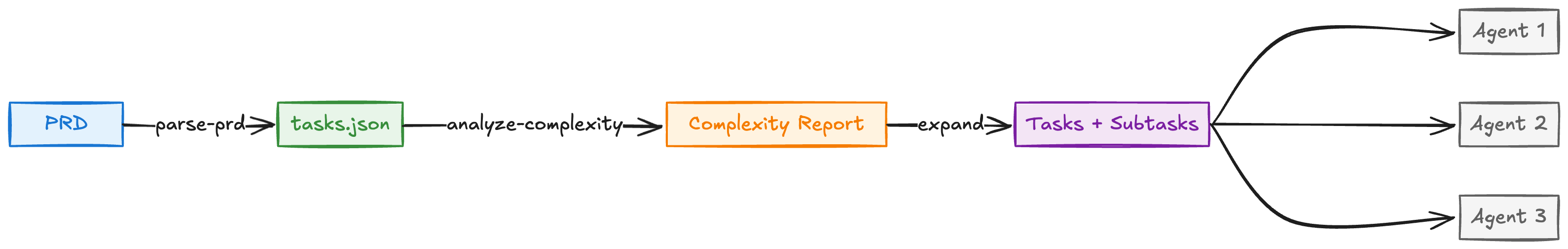 I ran up to three agents at once. I didn’t manually track which tasks depended on which. The AI did that when parsing the PRD, then refined it during complexity analysis.