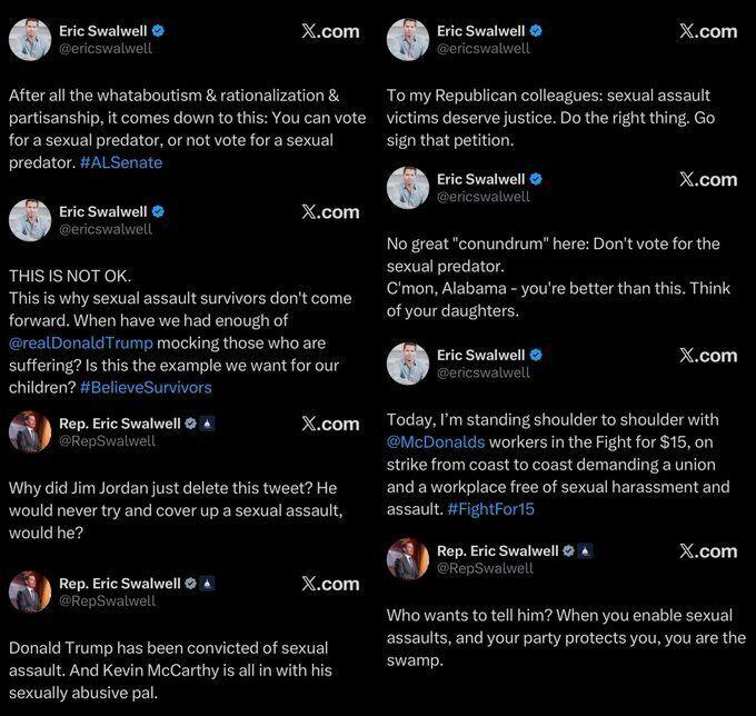 多名女性正准备公开指控国会议员埃里克·斯瓦洛韦尔(民主党,加利福尼亚州)存在性 misconduct,据民主党活动家切耶恩·亨特称。亨特与这些女性合作,声称斯瓦洛韦尔对女性员工、实习生甚至粉丝存在掠夺性行为模式,之后经常要求签署保密协议。指控范围从令人不适的信息到可能构成犯罪的行为,一些人提到了直接信息和Snapchat消息。