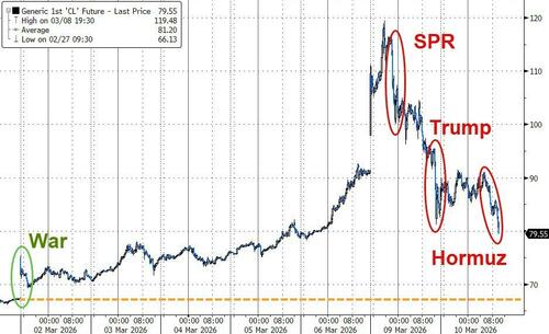 Newsquawk noted right away on the initial newswire crude complex extends on recent weakness, lifting stocks to fresh highs, as US Navy escorted oil tanker through the Strait of Hormuz. This was quickly met with White House 'confirmation' (of sorts), in a now deleted tweet by Energy Secretary Chris Wright:
