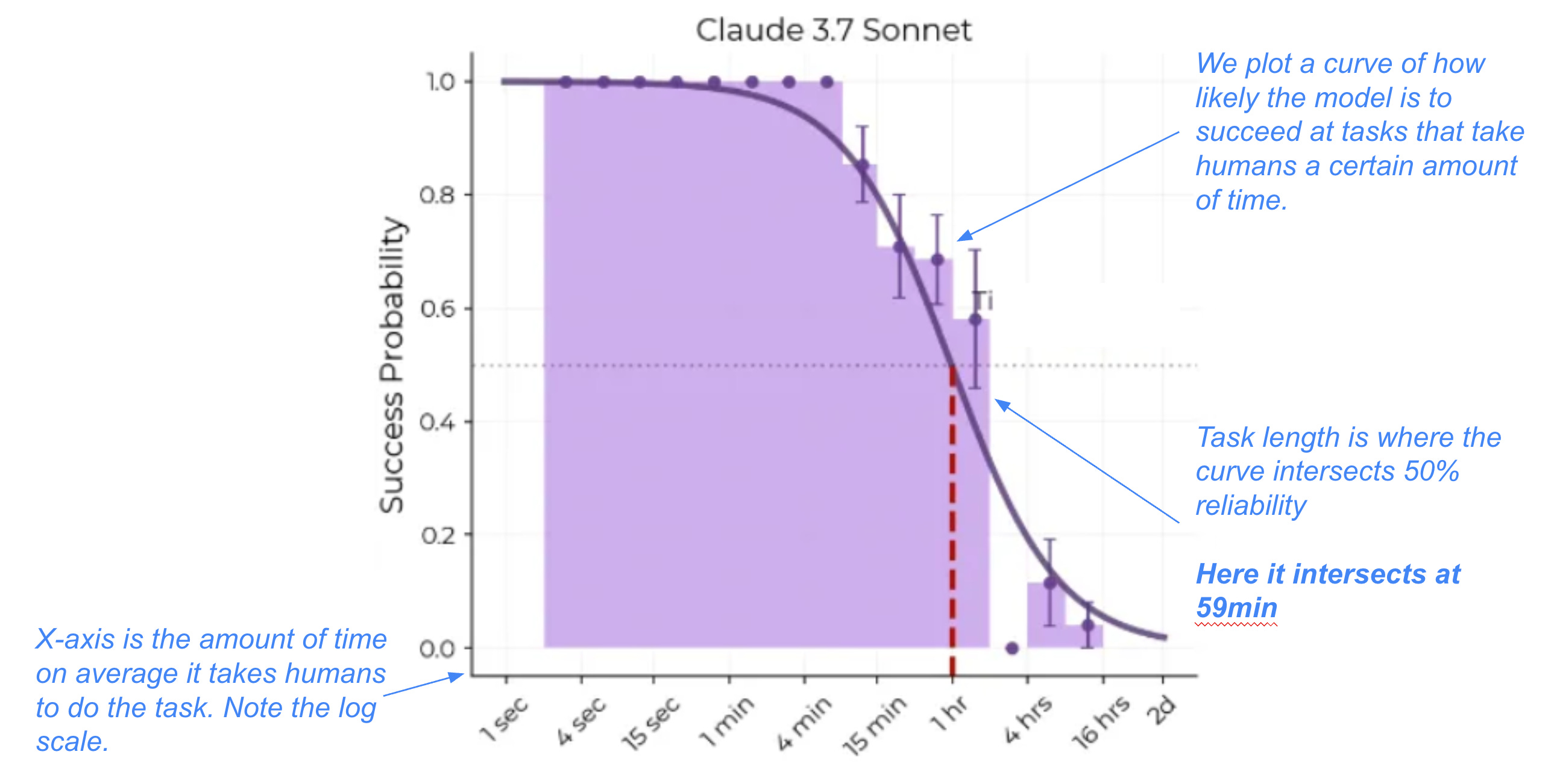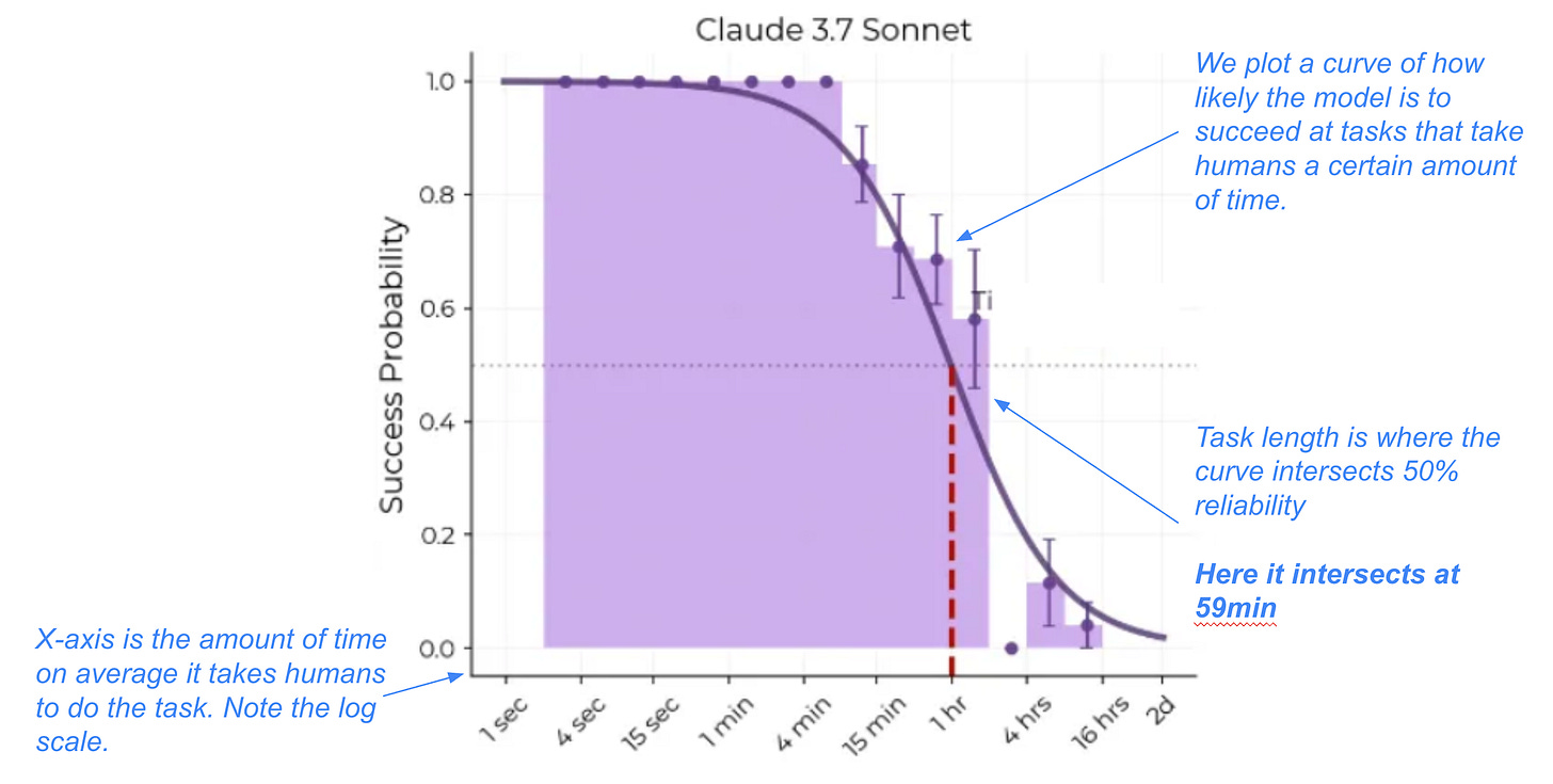 For example, while I’ve been writing this Substack for a few months, it is composed of individual blog posts that each take 3-20 hours to write. So if AI could automate all aspects of a 20-hour writing task as good as me, the AI could potentially have a compelling Substack too by just chaining together a bunch of 20-hour tasks producing individual posts.