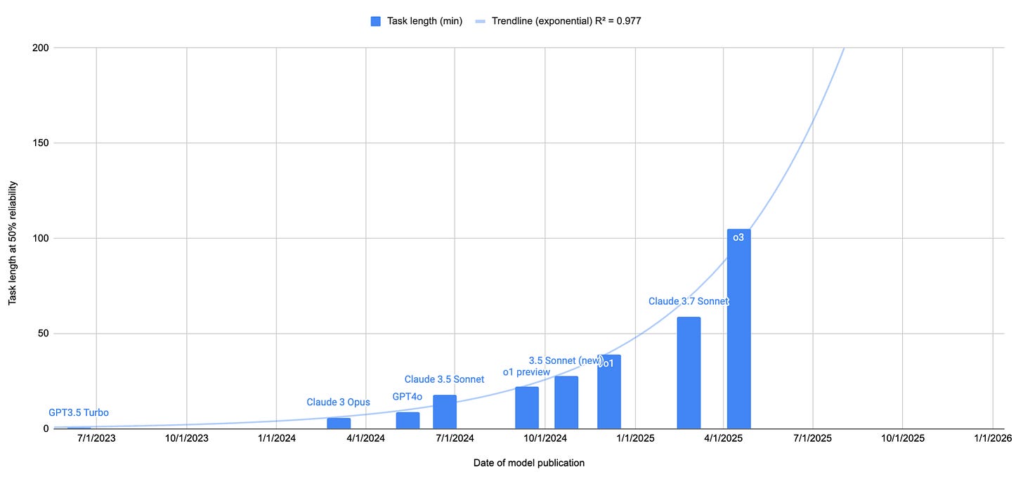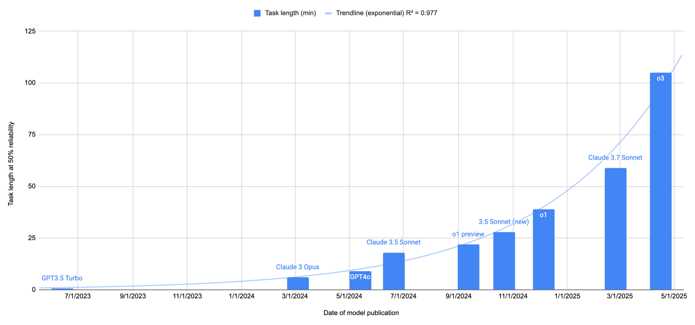 About a month ago, METR, an AI evaluations organization, published a bombshell graph and paper that says that AI is accelerating quickly. With OpenAI’s recent launch of o3 and o4-mini, we can see if these predictions hold up.
