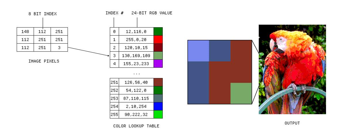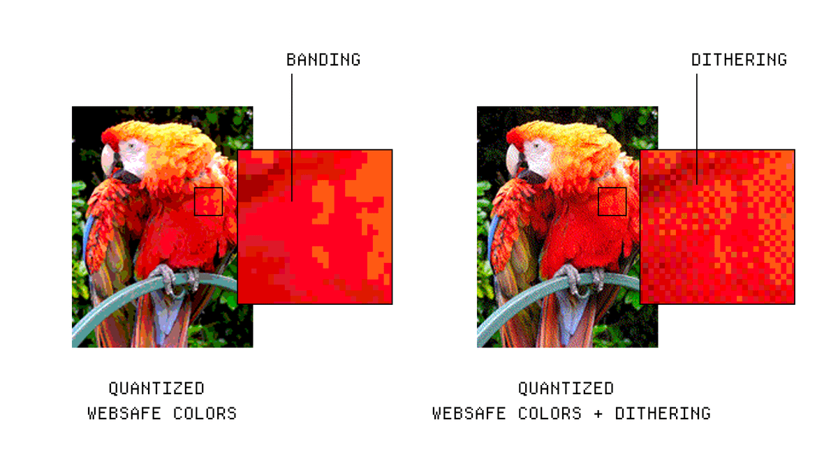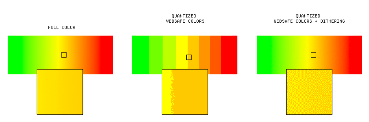 To get around this we used limited palettes with lookup tables or really low bit depth colors, to reduce the number of colors in an image, also called quantization.