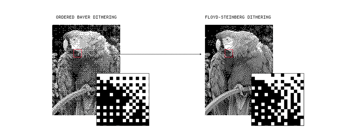 There are actually tons of other dithering algorithms but these are the two most common ones.